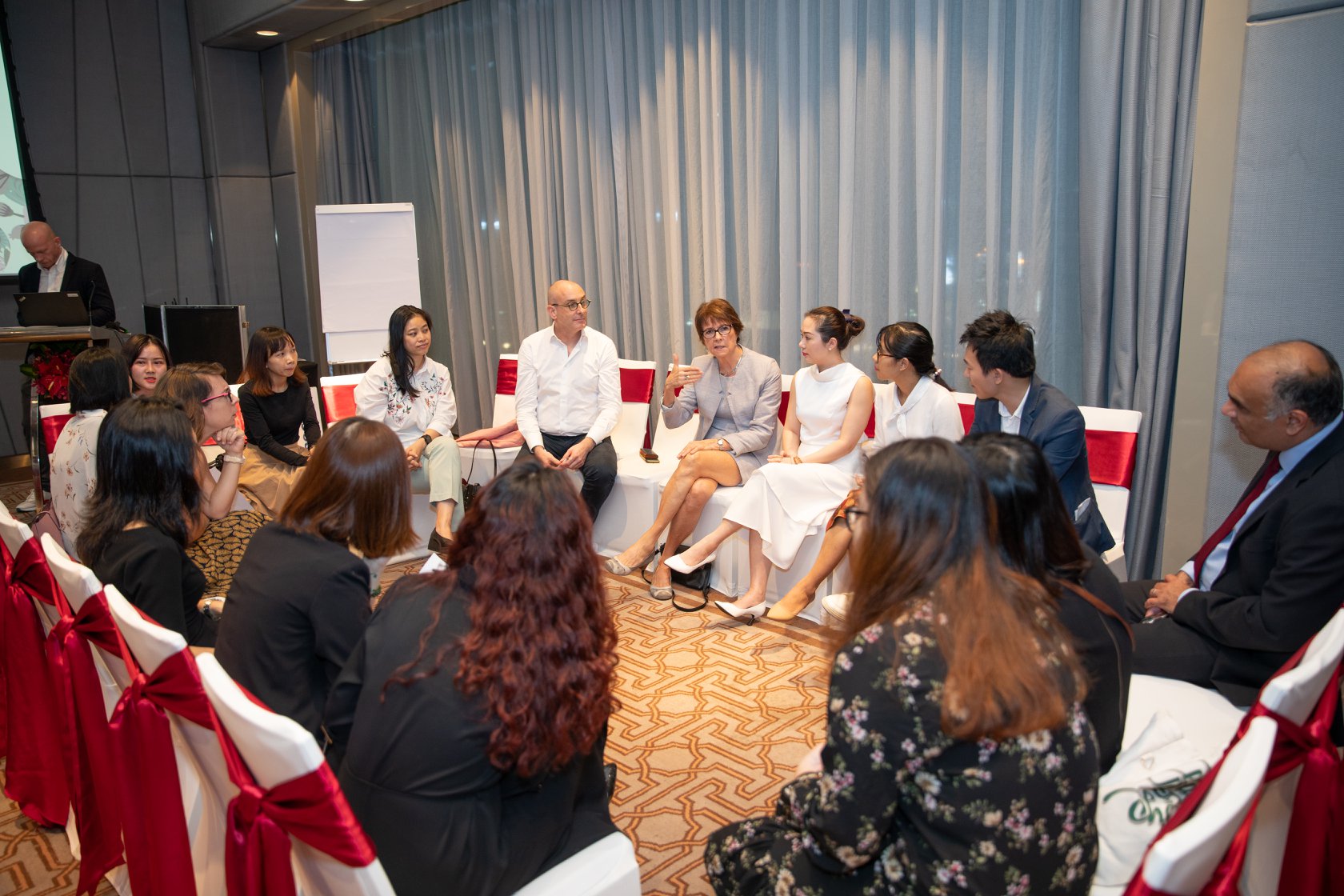 Với hơn 100 người tham dự từ cộng đồng doanh nghiệp, Tiến sĩ Sheryl, Thầy Joshua cùng với Bà Đàm Bích Thủy, Chủ tịch Đại học Fulbright, Bà Sarah Galeski từ KPMG, Bà Bopha Sem từ PWC, và Bà My Holland đến từ EQuest Asia đã chia sẻ những hiểu biết về cách các trường học, cộng đồng và nhà tuyển dụng ở Việt Nam có thể phát triển và trao quyền cho phụ nữ trong vai trò lãnh đạo.
